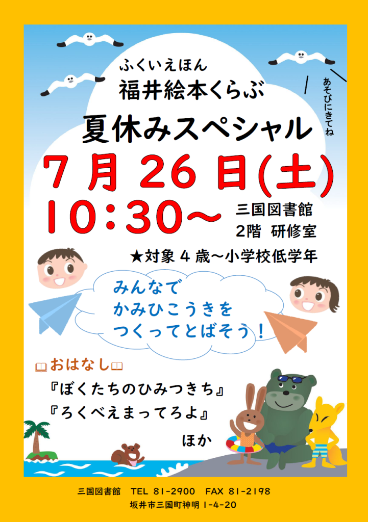 三国図書館 TEL 07776-81-2900 FAX 07776-81-2198