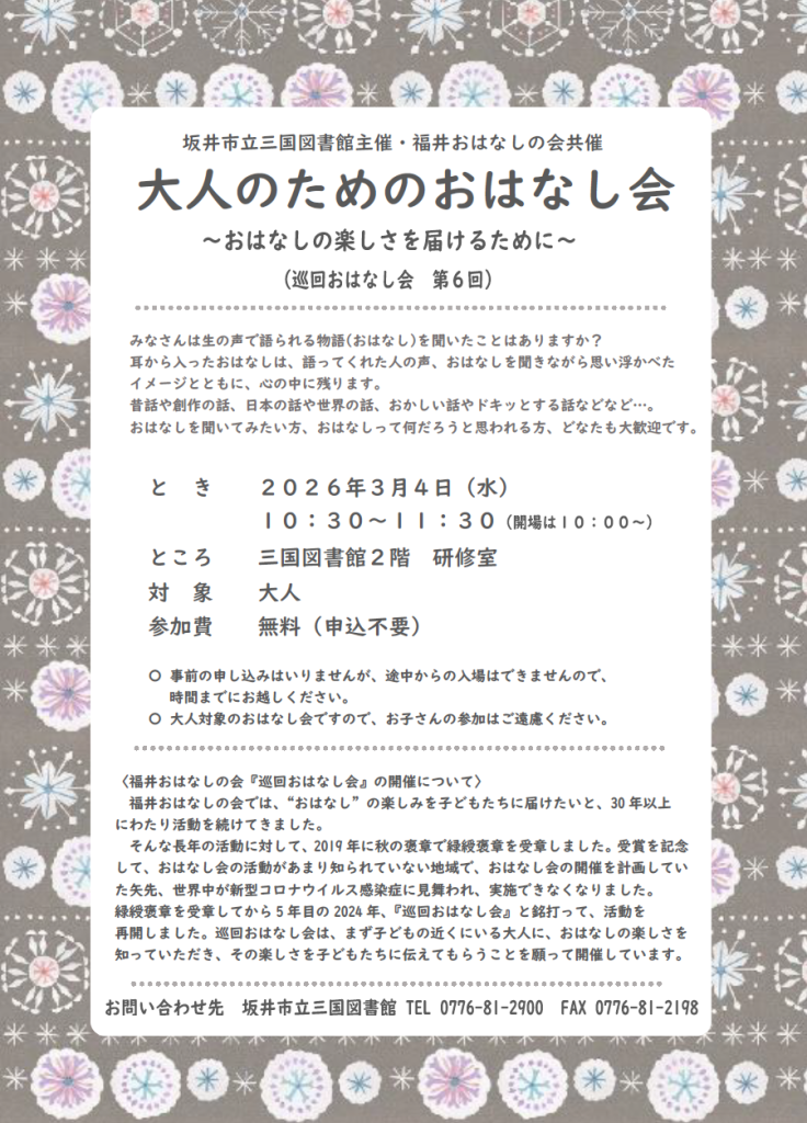 『大人のためのおはなし会 ~おはなしの楽しさを届けるために~』